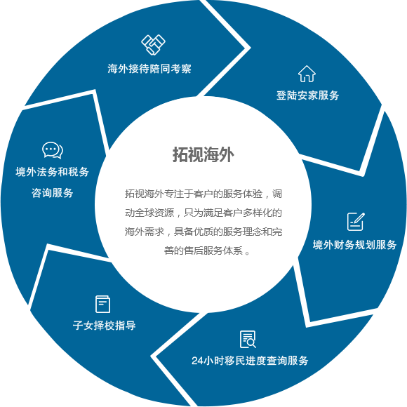 天津拓視海外商務(wù)信息咨詢有限公司由具備10年以上移民、留學(xué)、海外投資從業(yè)經(jīng)驗(yàn)的資深專業(yè)團(tuán)隊(duì)組建,致力于幫助上千家庭實(shí)現(xiàn)移民移居的愿望,打造天津本土移民行業(yè)品牌。拓視海外匯聚移民業(yè)界資深精英人士,聚集各國知名專業(yè)律師和資深專家顧問,確保專業(yè)水平和服務(wù)質(zhì)量,秉承誠信為本、專業(yè)為王、定制為道的理念,為客戶提供海外移居服務(wù)、海外教育服務(wù)、海外置業(yè)服務(wù)、海外投資服務(wù)、以及海外簽證服務(wù)五位一體的全球服務(wù)體系。同時,拓視海外擁有完善的售后服務(wù)體系,集海外接待陪同考察、登陸安家服務(wù)、境外財(cái)務(wù)、法務(wù)、稅務(wù)咨詢服務(wù),子女擇校指導(dǎo)和24小時在線進(jìn)度查詢服務(wù)于一身。